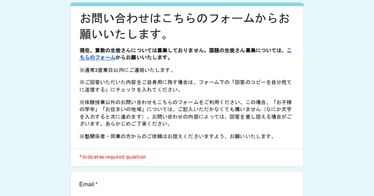 ※塾関係者の方からのご連絡はご遠慮いただいております。