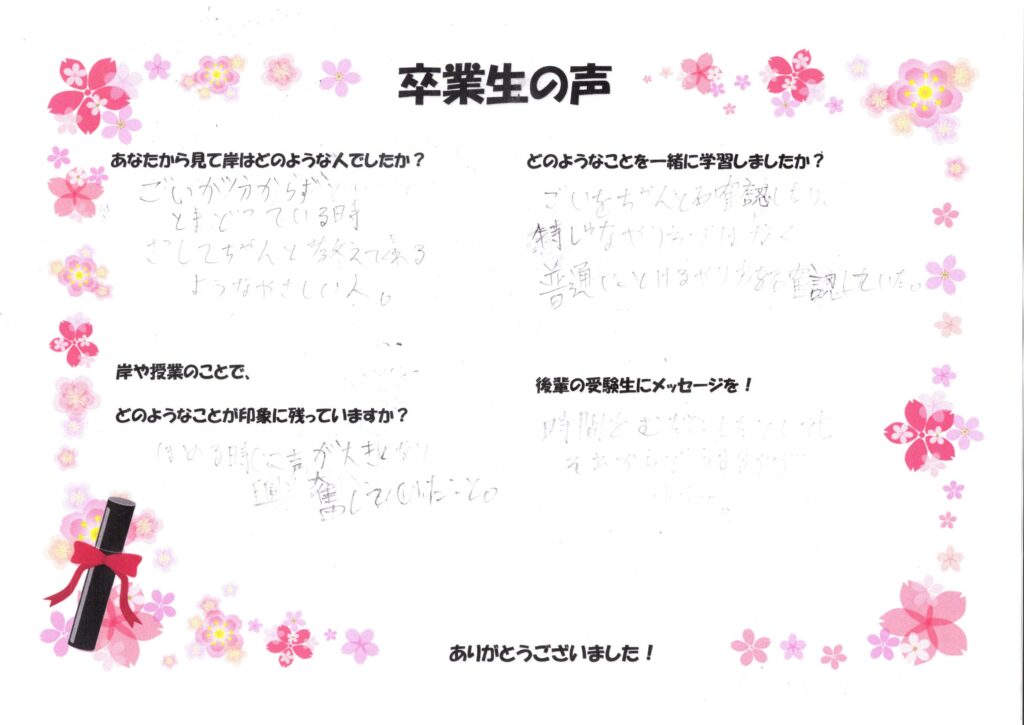 女子の卒業生が、一緒に学習した感想を寄せてくれました。